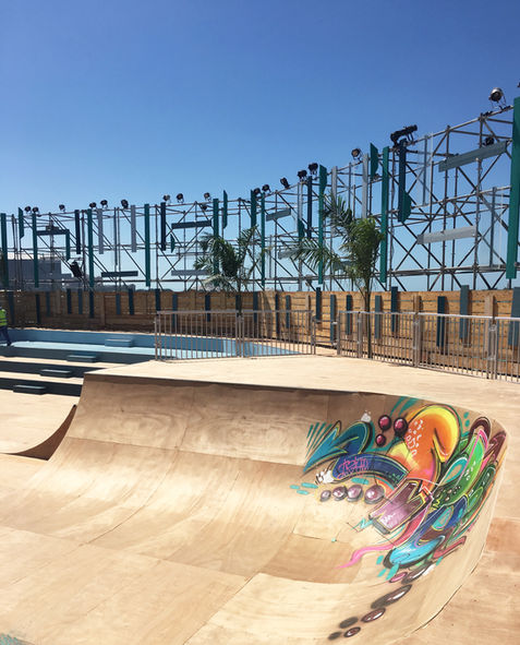 A unique multi purpose event space designed to host 10 days of music & dynamic live shows including hip-hop, dance troupes, poetry reading as well as extreme acts incorporating skateborders & BMXers. The Amphitheatre was part of the annual Mother Of The Nation Festival & was constructed from both new & re-purposed build materials.